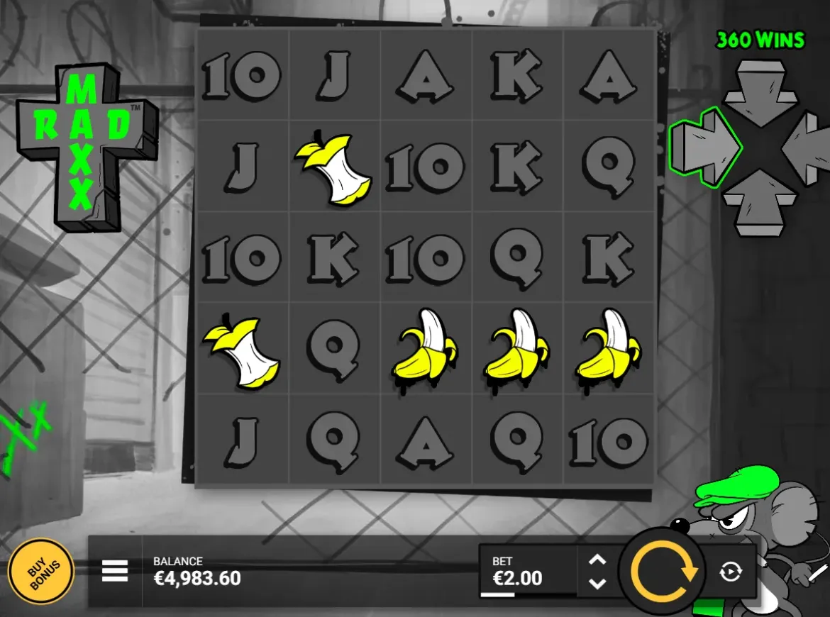 Rad Maxx by Hacksaw Gaming is a bold and innovative online slot that reimagines the classic cat-and-mouse rivalry in a gritty, neon-soaked setting. As a spiritual successor to RIP City, the game brings Maxx the Mouse and Ro$$ the Cat back into focus, this time introducing a unique mechanic where winning combinations can land in any direction across a 5x5 grid, rather than following traditional left-to-right paylines. Featuring high volatility, up to 76 dynamic paylines, and an impressive maximum win of 12,500x your stake, Rad Maxx delivers intense gameplay driven by wild multipliers, evolving bonus features, and a striking black-and-white visual style that explodes with color during big wins. Players who want to explore the mechanics and atmosphere risk-free can try Rad Maxx in demo mode on Freedemoslots.net.